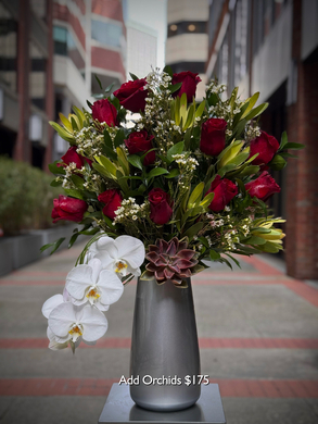 A timeless declaration of love - 12 Roses arranged in a traditional style, both natural and magical in composition.
